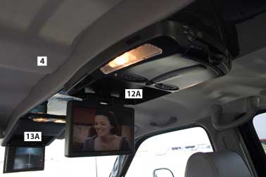 13B. Integrated Driver Sun Visor Fold Down, Color + Audio